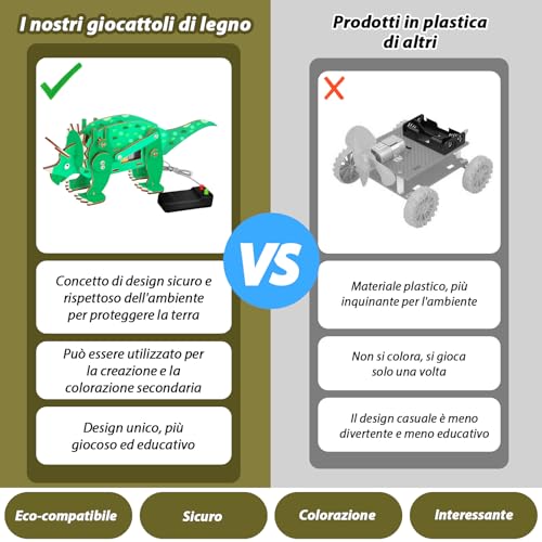 CON CONTROLLER A FILO PER FAR MUOVERE I DINOSAURI - I kit di blocchi da costruzione in legno T. Rex, Brachiosaurus e Triceratops contengono ciascuno un controller a filo, quindi i bambini possono utilizzare il controller a filo incluso nella confezione per far muovere i dinosauri in avanti e indietro dopo aver costruito i fili durante la costruzione, molto singolare e i vostri bambini proveranno un senso di realizzazione per i giocattoli dinosauro mobili che hanno realizzato.