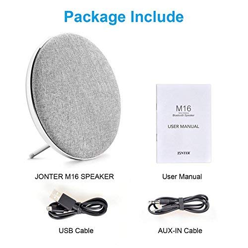 ● [Cosa Ottieni]: Altoparlante Bluetooth Jonter M16, cavo di ricarica micro USB, cavo AUX, manuale utente e guida di benvenuto, garanzia Worry-free garanzia di 24 mesi.