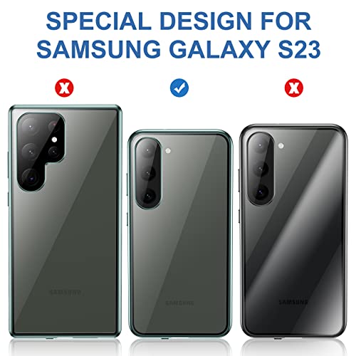 [Struttura In Metallo Adsorpimento Magnetico]: La custodia per Samsung Galaxy S23 adotta la tecnologia di adsorbimento magnetico, il magnete incorporato avvolge la custodia in vetro e il telaio metallico viene automaticamente assorbito quando è vicino alla custodia del telefono. Non sono necessarie complicate procedure di installazione manuale.