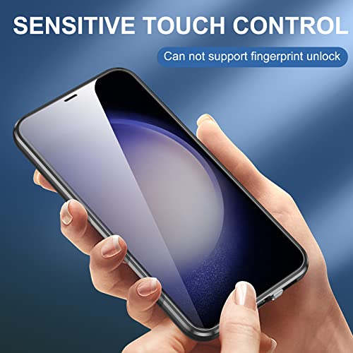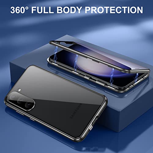 Jonwelsy Custodia per Samsung Galaxy S23, Adsorbimento Magnetico Paraurti in Metallo con 360 Gradi Protezione Case Doppi Lati Trasparente Vetro Temperato Flip Cover per Samsung Galaxy S23 (Nero)