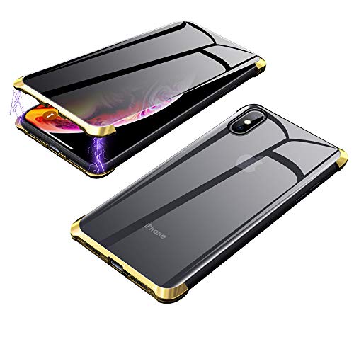 Jonwelsy Frameless - Cover per iPhone XS Max (6,5 pollici), Privacy in vetro temperato, anti-spia, 360 gradi, protezione Casa, assorbimento Magnetico Paraurti in Metallo Custodia (Oro)