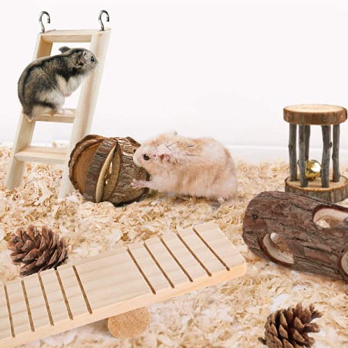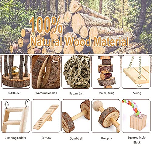 Joody - Set di 10 pezzi per criceti, giocattoli naturali in legno, gerbilli, ratti, cincillà, accessori per la cura dei denti molari, giocattolo per criceti