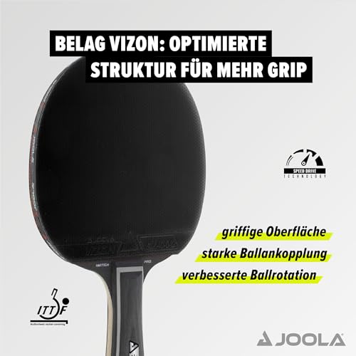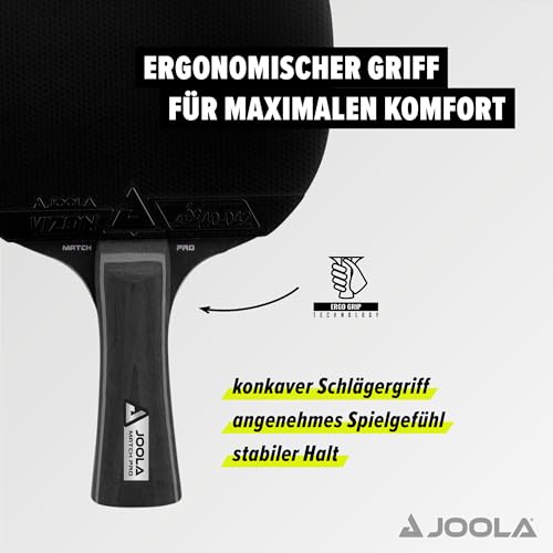 Racchetta da tavolo Top JOOLA a 4 stelle: il JOOLA Match Pro superbilanciato è comodo ed efficace quando si tratta di produrre rotazione e accelerazione della palla. Migliora il tuo gioco di ping pong con il set Black Duo Pro