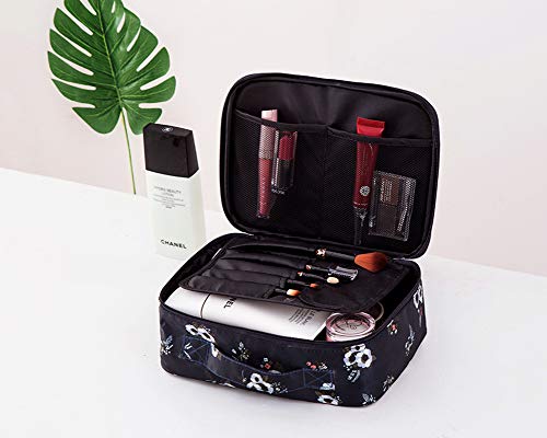 JooNeng, piccola borsa da viaggio per trucchi, con scomparti, organizer cosmetici, trousse per donne e ragazze Black Flowers A