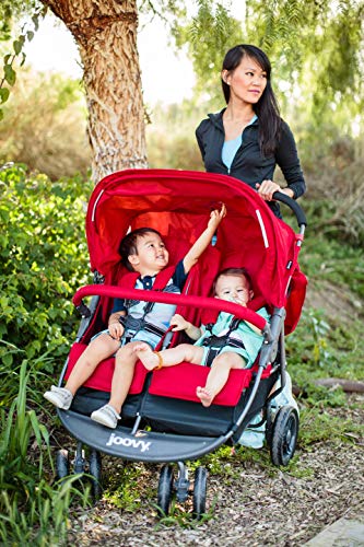 Joovy Scooter X2 Passeggino Doppio, Passeggino Affiancato, Passeggino per Gemelli, Grande Cestino Portaoggetti, Rosso