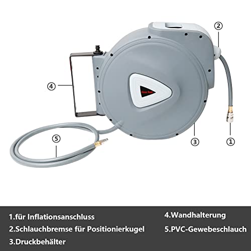 Joparri Avvolgitubo per aria compressa da 30 m, attacco automatico da 1/4", avvolgitubo automatico a 180°, bloccabile a qualsiasi lunghezza, avvolgitubo per montaggio a parete