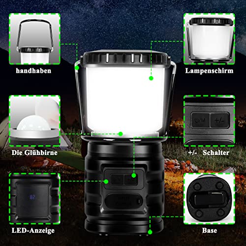 Joparri Lampada da Campeggio, 10000mAh Ricaricabile USB Lanterna da Campeggio Portatile Impermeabile, IP65, 6 Modalità Dimmerabili, per il Campeggio, l'escursionismo, Escursionismo, Emergenza