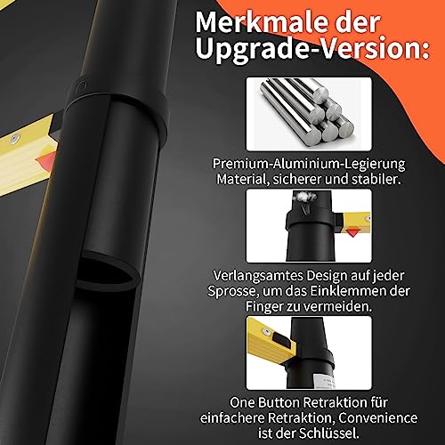 Joparri Scala telescopica in alluminio da 3,8 m, con gancio rimovibile, scala allungabile, scala multiuso, funzione di ritiro con un pulsante, carico lento, 150 kg, nero e giallo