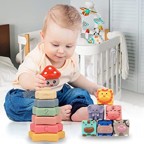 [Giocattoli sensoriali per bambini da 6 a 12 mesi] I giocattoli da impilare per bambini sono coloratissimi e ricoperti da ricche texture in rilievo per un'eccellente consistenza e un tocco delicato che stimola i sensi tattili del bambino. Toccando e osservando questi motivi in rilievo, i bambini beneficiano dello sviluppo della sensibilità ai colori e contribuiscono a sviluppare le abilità pratiche. Ideale per lo sviluppo precoce dei bambini dai 6 ai 12 mesi.