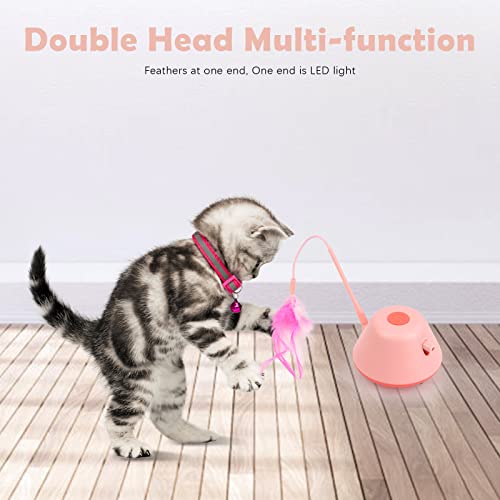 JOPHEK Giochi Interattivi per Gatti, Gioco Gatto LED Auto-rotante Giochi Interattivi per Gatti Gioco Automatico per Gatti con Piume e Stelle Filanti Rimovibili, 3 Modalità (Rosa)