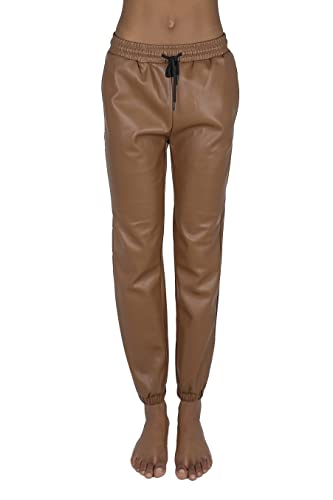 JOPHY & CO. Pantalone Donna in Ecopelle Largo Comodo con Tasche e Coulisse (cod. 9827) (Cuoio, L)