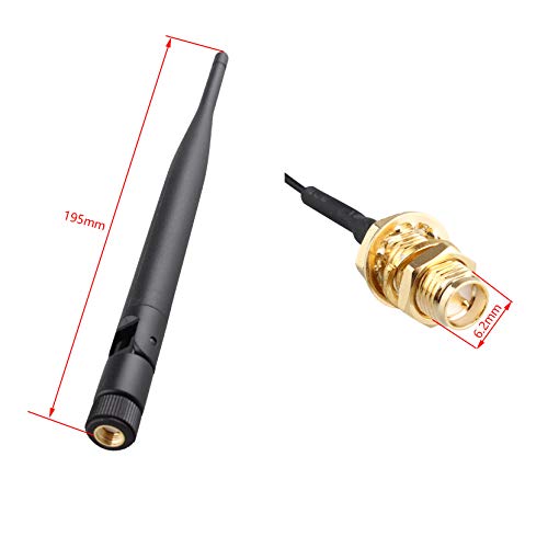 Jopto 2 pz 2.4G 5.8G Dual-Band High Gain Wireless Router Antenna 5DBI WiFi Omnidirezionale RP-SMA Connettore Femmina con 15 cm U.FL IPEX Mini PCI a RP-SMA Maschio Pigtail RF 1.13 Antenna WiFi Cavo