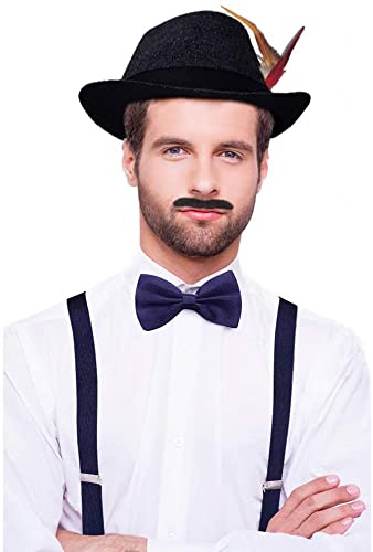 JORAKI Gatsby Accessori Uomo Anni ‘20 con Gangster Cappello Bretella Papillon Baffi Finti Orologio da Taschino,Set Costumi da Uomo per Travestimenti Feste di Ruolo Halloween (Navy)