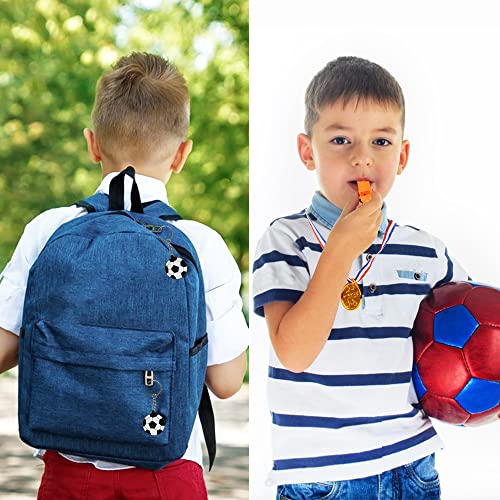 52 pezzi di Gadget Calcio: 10 braccialetti da calcio, 6 portachiavi da calcio, 10 tatuaggi da calcio, 4 fischietti da calcio, 6 penne da calcio, 6 medaglie del vincitore e 10 sacchetti regalo da calcio. Grandi articoli per feste di calcio per feste di compleanno per bambini.