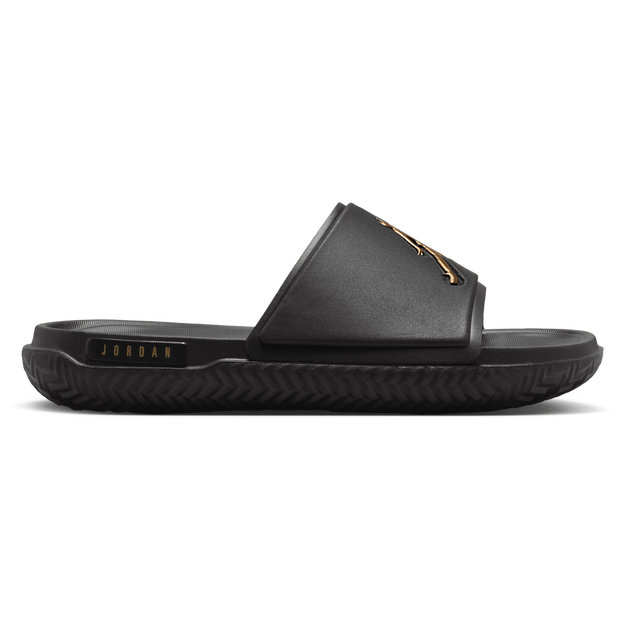 Easy, breezy, classic slides with hoops DNA. A Jumpman logo on the strap makes it clear—they're anything but average. Benefits: The soft strap is easy on your foot. The sole has a textured footbed, offering supportive cushioning. Herringbone pattern on the outsole provides traction.