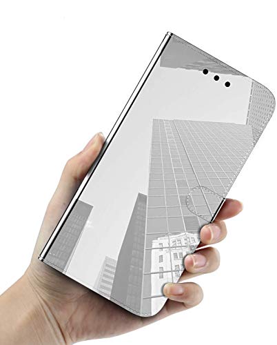 Jorisa Cover per Samsung Galaxy A50/A50S/A30S,Specchio Placcatura Trucco Pelle Flip Cover,Slim Leggero Portafoglio Caso con Supporto,Slot Carta et Cinturino,Cristallo Lucido Custodia,Argento