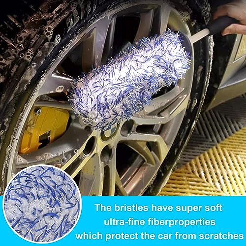 Jortmrd Microfibra Spazzola Cerchi Auto,Spazzola Lavaggio Auto,Pulizia Cerchi in Lega,Pulisci Cerchioni Auto Senza Graffi, Pennelli Pulizia Auto per Tutti i Tipi di Cerchioni (Bleu/Blanc)