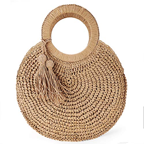 JOSEKO Borsa da Donna in Paglia, Borsa da Spiaggia Estiva in Spalla Pochette Con Nappe Borsa Da Viaggio Per Il Tempo Libero in Paglia Di Leggera Semplice Elegante (Marrone)