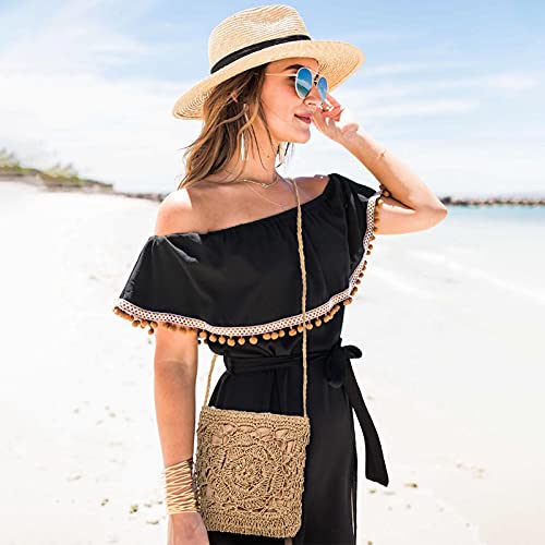 JOSEKO Borsa di Paglia, Donna Borsa a Tracolla in Paglia per il Viaggio in Spiaggia e Uso Quotidiano(Marron)