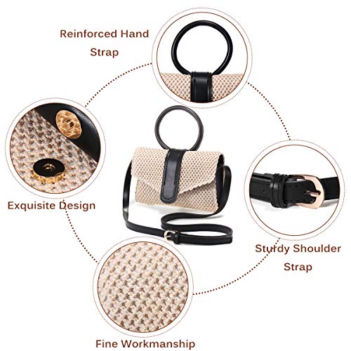 JOSEKO Borsa a Tracolla Borsa a Spalla in Paglia Borsetta pe Donne Borsa a Mano Borsa da Spiaggia Estiva per Viaggi e Vacanze Bianco