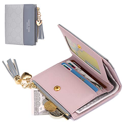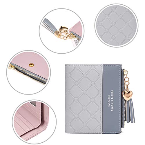 JOSEKO Portafoglio Donna, Piccolo Portamonete Multi Slot in Pelle PU con Nappe Borsa Porta Carte Sottile per Ragazza Grigio