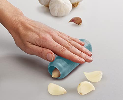 Joseph Joseph Duo Pela Aglio in Silicone, Rullo per aglio facile da sbucciare e inodore, Azzurro