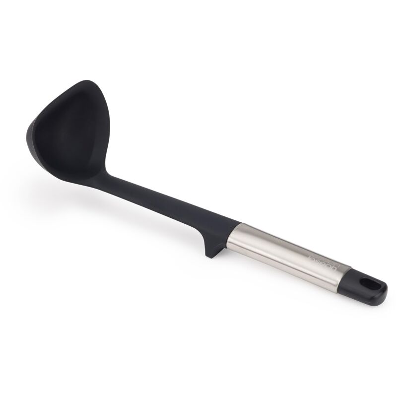 Questo mestolo dal tocco smart, di stile, è dotato di una testa profonda in silicone per tutte le operazioni di prelievo alimenti e di un elegante manico in acciaio inossidabile con un portautensili integrato, progettato per evitare che la testa tocchi il piano di lavoro quando viene appoggiata. Questo non aiuta solo a migliorare l'igiene, ma riduce anche il disordine in fase di cottura. Il bordo anteriore piatto facilita la raschiatura fino all'ultima goccia da pentole e padelle e il silicone è resistente al calore fino a 210˚C/410˚F. Si tratta di un prodotto perfetto da usare con tutti i tipi di pentole, comprese quelle anti-aderenti. È dotato anche di un foro per appendere il manico per riporlo in modo facile.