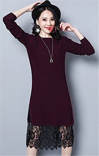 JOTHIN Corea Pizzo Falso Due Maglioni Girocollo Manica Lunga Abiti Cracking Giuntura Linea ad a Abito Tinta Unita Elganti Maglieria Donna