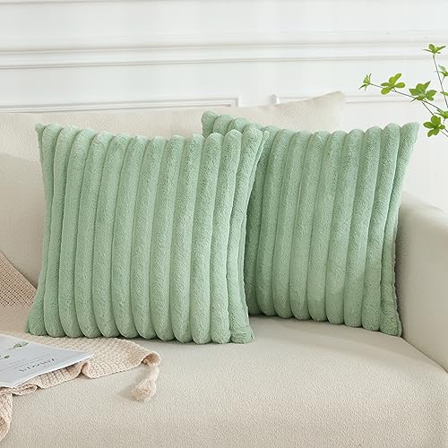 JOTOM Set di 2 federe quadrate double-face, in finta pelliccia, 45 x 45 cm, morbide, decorative, per la casa, per divano, letto, 45 x 45 cm, verde salvia