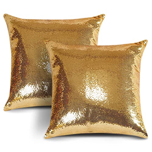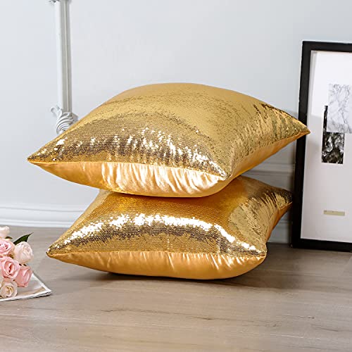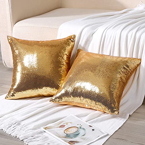 JOTOM Fodera per Cuscino 2 Pezzi Copricuscini per Divano in Raso con Paillettes per Divano di Casa Camera da Letto Decorativa per Auto (45x45cm, Squame di Pesce, Oro)