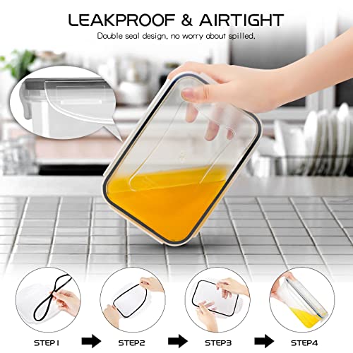 【100% ERMETICO E A PROVA DI PERDITE】Con design a doppia tenuta, coperchio facile da aprire e chiudere. I coperchi con guarnizione in silicone e chiusura a scatto assicurano che non entri aria o acqua, mantenendo il cibo asciutto e fresco. Le guarnizioni in gomma sono facili da pulire.