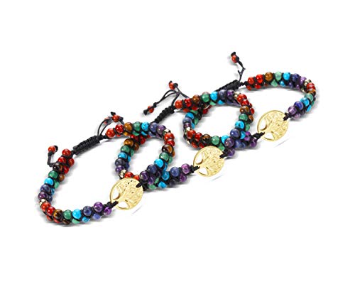 JOVIVI - Bracciale elastico da donna, con perle e pietre naturali, 7 chakra, con pietre preziose, Pietra,