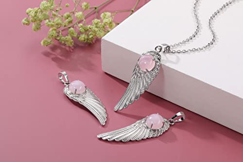 Jovivi Collana in argento con ciondolo a forma di ala d'angelo, con ciondolo in quarzo rosa, per donne e ragazze, con protezione amuleto fortunato e