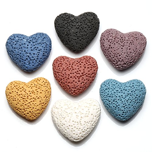 Jovivi collana con ciondolo medaglione a forma di cuore, aromaterapia, diffusore oli essenziali, 7 x pietre laviche