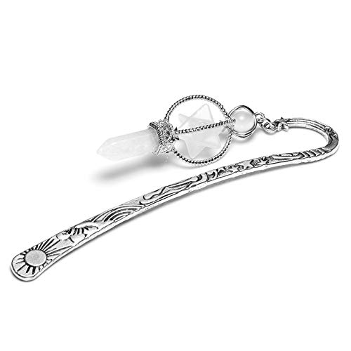 Jovivi vintage segnalibri in metallo argento per le donne ametista quarzo rosa chiaro cristallo punti Merkaba Star ciondolo libro Marker per Grils da uomo, pezzi