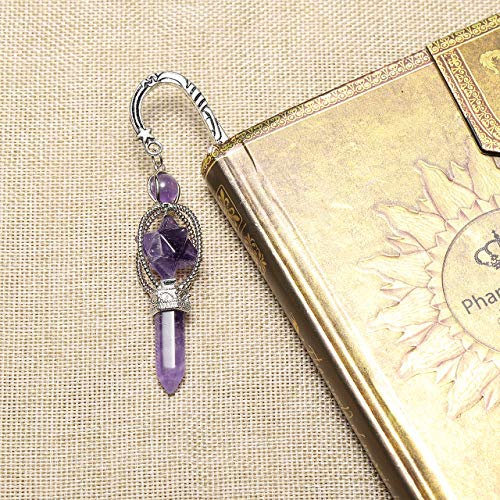 * Design unico: questo set segnalibro riflessi si design speciale, Bent caratteristiche Shank - Retro Design argento lucido in metallo - Con incisione le stelle, la luna e il sole, collegato a una mano ametista Merkaba Star quarzo cristallo e ametista cristallo punto bacchetta la disposizione che rende facile trovare dove avete a in un libro.