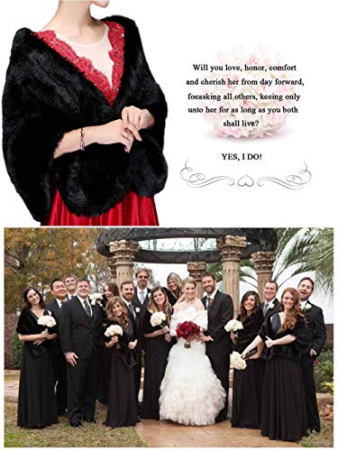 Jovono Donna Pelliccia Faux Scialle Coprispalle Giacca Sciarpa Wrap Cape Perfetto per Matrimonio Partito Spettacolo con spilla libera (Nero)