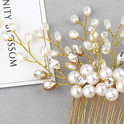 Jovono Pettine per capelli da sposa con strass e perline per donne e ragazze (argento) (oro)
