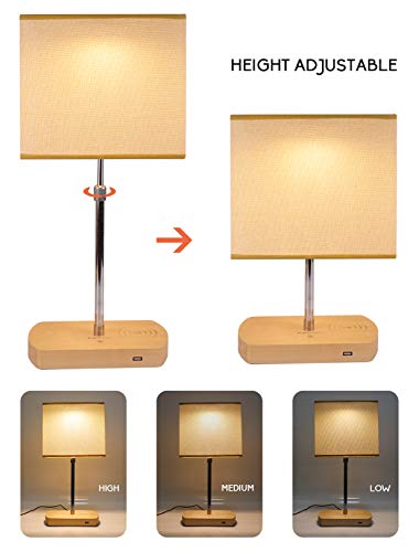 JOWHOL Lampada da tavolo con caricatore wireless da 15 W, lampada da comodino, touch dimmerabile, ricarica USB, luce notturna a LED, regolabile in altezza, lampada da scrivania per soggiorno