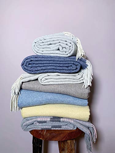 JOWOLLINA Coperta in lana plaid, 140 x 200 cm, cashmere/lana merino extra fine (argento blu Herringbone)