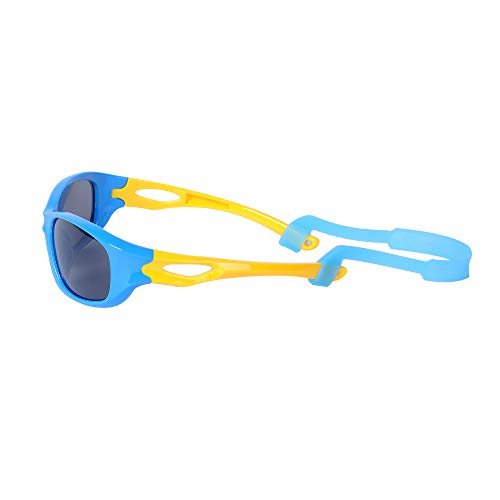 JoXiGo Occhiali da Sole Sport Bambino Polarizzati Gomma Flessibile + Cinturino per Occhiali + Custodia, per Ragazze e Ragazzi Età 3-12