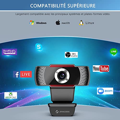 J JOYACCESS Webcam per PC, webcam 1080p/30fps con microfono Full HD, webcam USB Plug and Play con widescreen a 105 gradi, telecamera PC per conferenze, studio, zoom, Skype, compatibile Windows, MacOS