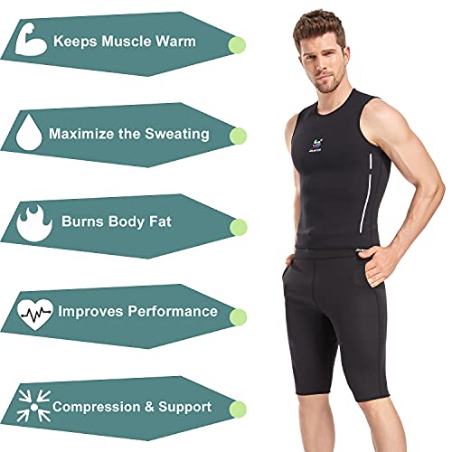 ✅ Sudare Come Volete - Grazie al suo materiale SCR-5500, questa canottiera uomo palestra può attraverso un modo speciale assorbire il calore del corpo e quindi innalzare la temperatura corporea. Indossando questa tuta da sauna durante l'attività sportiva, può farvi accelerare la sudorazione, fino a 5 volte. Il potere assorbente di questa canotta dimagrante uomo è elevato, ciò impedirà di sentirvi umidi o appiccicosi per l'eccessiva sudorazione. Impiegherete meno tempo per bruciare più calorie!