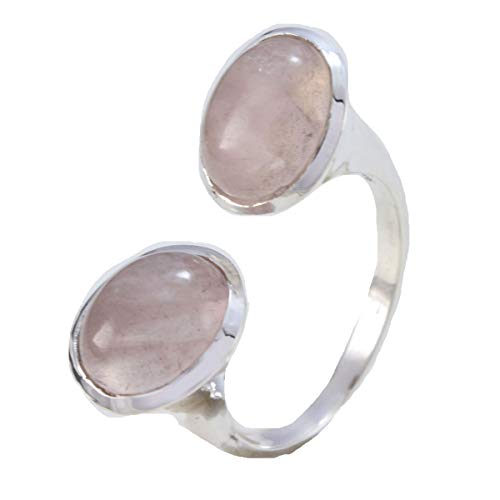 Joyas Plata gemme vere di forma rotonda con due anelli di quarzo rosa cabochon in pietra - anello in argento sterling 925 con quarzo rosa rosa - may birth taurus astrology real gemstones ring