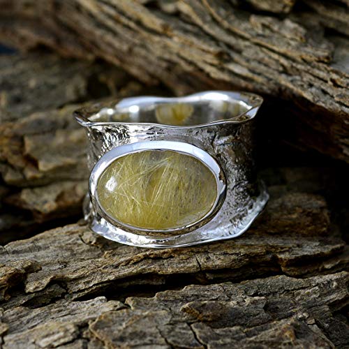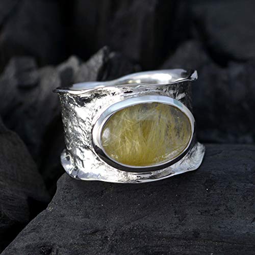 Joyas Plata, pietre preziose autentiche, forma ovale, una pietra cabochon, anelli di quarzo rutilo - anello di quarzo rutilo giallo argento 925 - agosto nascita leo astrologia anello pietre preziose