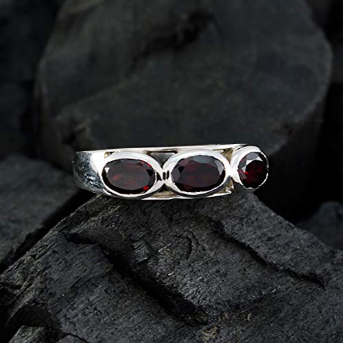 Joyas Plata, pietre preziose vere, forma ovale, tre pietre sfaccettate, anello granato - argento 925 granato rosso anello - gennaio nascita capricorno astrologia vero gemme anello