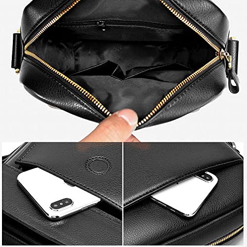 【Design Multi-Tasche】Borsa Tracolla Uomo Pelle Nera Ci Sono 3 Scomparti Grandi in Totale. Ll Vano Frontale Zipper Viene Con 1 Tasca Zipper, 2 Tasche Per Penne All' Interno. Ll Principale Compartimento Con Cerniera più 1 Tasca Interna Con Zipper. Ll Borsello Uomo a Spalla è in Grado Di Organizzare i Tuoi Oggetti Senza Problemi