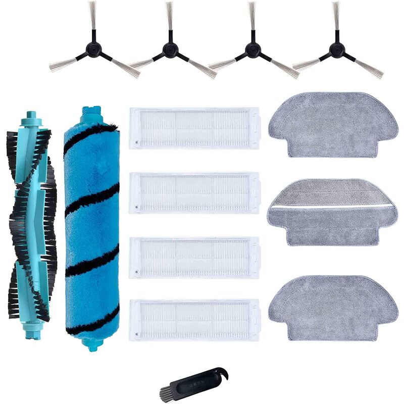 Set di 14 accessori: 1 rullo in setola e 1 rullo in gomma;