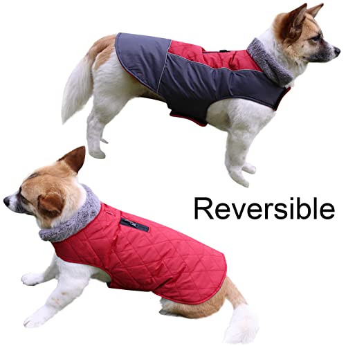 JoyDaog Cappotti per cani in pile per cani di piccola taglia,Giacca per cuccioli calda reversibile per inverno freddo,Rosso XS