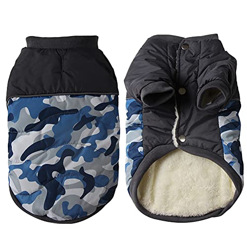 JoyDaog Fodera in pile Cappotti caldi per cani di piccola taglia Giacca impermeabile per cuccioli per inverno blu mimetico XS